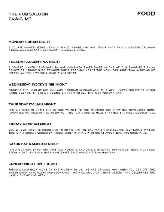 A ROTATING MENU FROM OUR FAVORITE FLY FISHING DESTINATIONS AROUND THE WORLD.